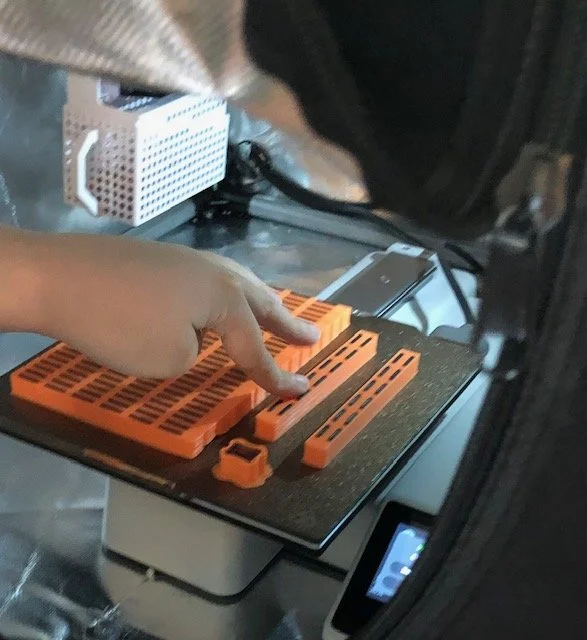 The project got approved (of course it did!) and then it was time to order filament (brown is surprisingly difficult to find.) He started printing. There was a lot of resilience needed here – the 3D printer wasn’t working well right off the bat, and having to switch colors and keep track of all the elements was…a lot. But he did great and it was so exciting to see how excited he was when the first batch finally came off the printer.